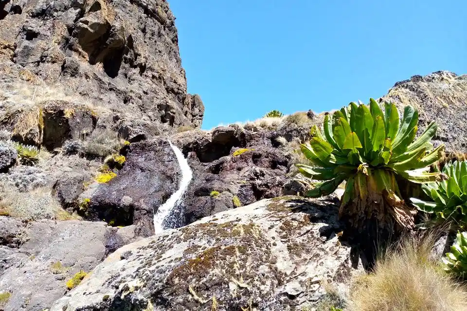 Have lunch and check in the park and start your trekking. The trail takes you vast wilderness with high chances of spotting wildlife. Make a scenic pass at Mugi hill summit (3,600m) which will allow good acclamation continuing to Lake Ellis camp.