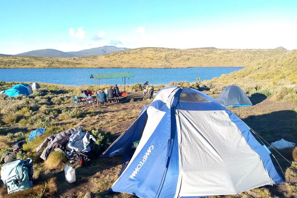 Breakfast will be served from 8am since today's hike is short. Climbing away from the beautiful Lake Michaelson ascend into the alpine zone a world of rock and ice as we go up towards the main peaks, leaving behind the giant lobelias and onto glacial moraine. A last short sharp scree slope takes us to Simba Tarn where we overnight. It will be a cold night depending with the weather on that day, extra layer of warm clothes is advised, as you are just few meters to the peak.